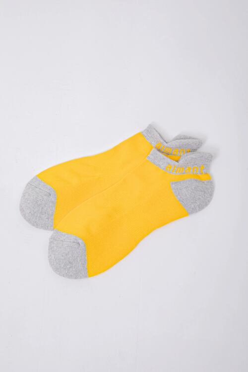 シューズからちらりとのぞくAIMANTロゴがポイントのアンクルソックス。