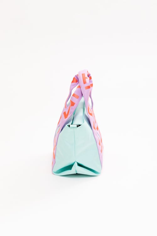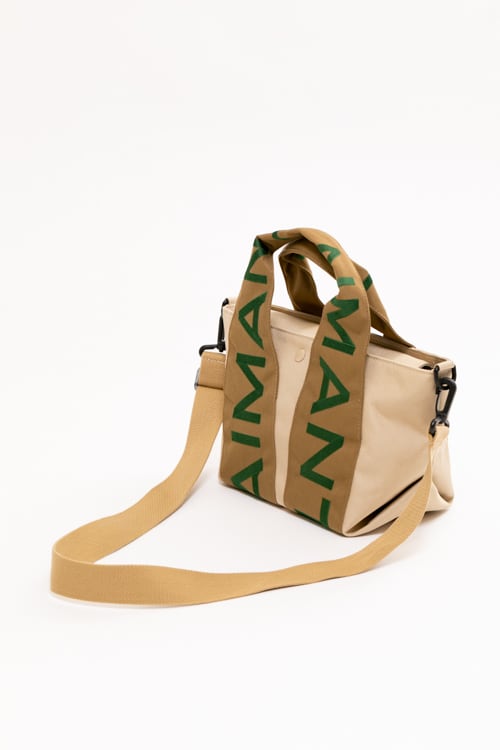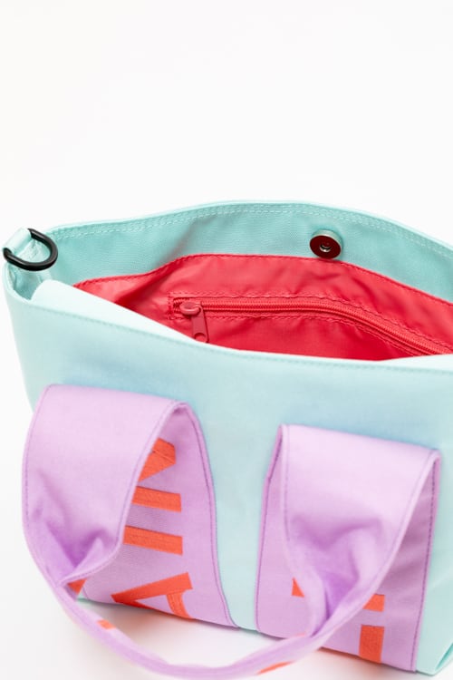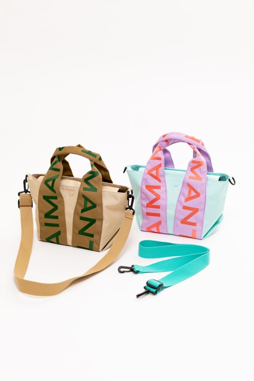 ベーシックで落ち着いた配色のベージュと、POPでコーディネートのアクセントとなるミントのカラー展開で、絶妙なロゴ配色が華やかさとモード感をプラスします。