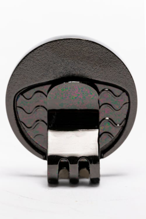 台座はクリップタイプを採用しキャップのバイザー部分に差し込め、マーカーはマグネットなので、グローブをしたままでも簡単に取り外しができて便利です。